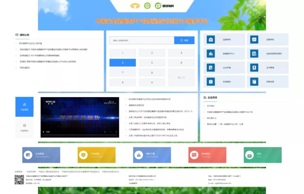 中国安全健康防护产品质量验证追溯公共服务平台由中国纺织品商业协会授权搭建、UTC(全球代码发行机构)追溯二维码发行、工信部授权设立防伪标识、江苏国健物码科技有限公司开发建设及运营执行。